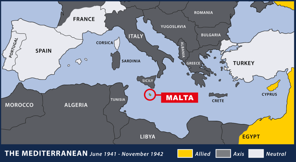 Commonwealth War Graves Commission (2024) Map of the Mediterranean 1941. [Online Image]. Available from: <https://www.cwgc.org/visit-us/visit-malta/> [Accessed 6 February 2024].