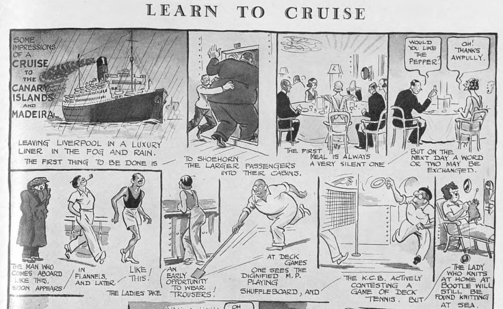 The Tattler – 1933- Depiction of the activities available on cruises in a satirical magazine